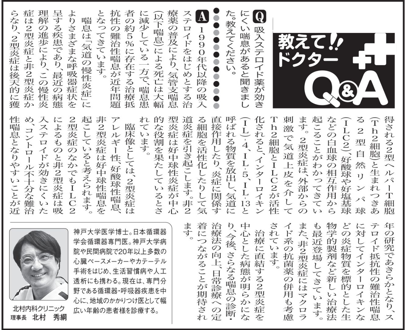 2026年2月25日神戸新聞朝刊「教えて!ドクターQ&A」のコーナーで北村院長の記事が掲載されました!
